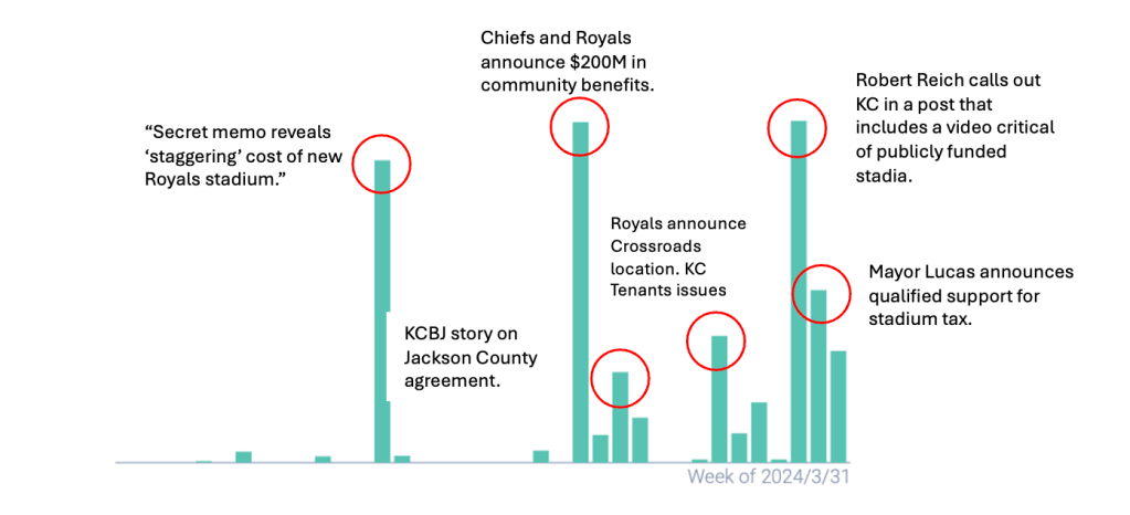 There were four key moments for the stadium tax initiative, as evidenced by the tremendous spikes in social media activity in the year leading up to the election.