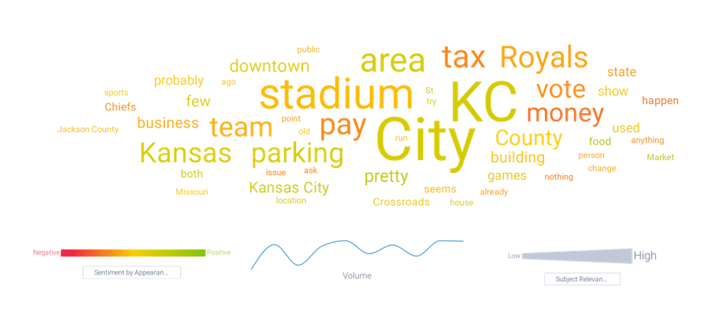 According to the Infegy sentiment analysis indicates 38.6 percent of all posts were negative, 37.5 percent neutral and 23.8 percent positive. Most of these posts called attention to statements issued by either the Royals, KC Tenants, or other interested parties, with each person offering his or her own commentary.